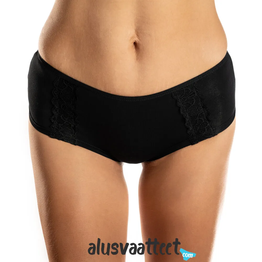 Naisellista pehmeyttä – normaalivyötäröiset puuvillabokserit pitsillä!